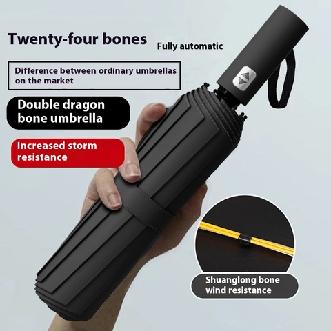 Paraguas publicitario a prueba de viento de 24 costillas al por mayor con logotipo personalizado impresión UV paraguas negro plegable de costillas de negocios 8K